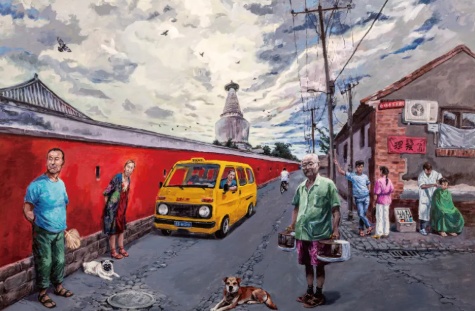 此次展览作品,是斌哥对儿时北京的“念想“,画面里有推着冰棍车的二姐,提着岛笼的二姐夫,隔壁街坊刘大妈,还有发小乐队那帮哥们儿……斌哥曾在90年代游走香港、广州、深圳南方城市,在20多年的浪子生涯,或许最让他放不下的是对家乡北京的眷恋,看见京牌小车,都像见到亲人一般。