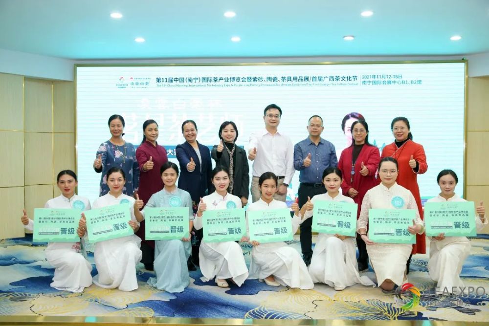 中国茶叶学会科普委员会委员、国家茶艺职业技能大赛裁判员,茶艺师高级考评员刘汉群老师;广西南宁技师学院茶艺高级技师、国家茶艺职业技能竟赛裁判员、高级考评员、广西职业技能竞赛(国赛项目)裁判员专家库人员、高级礼仪培训师石冰老师;副教授、茶艺高级技师、高级评茶员、茶艺师国家职业技能鉴定考评员吴苏秀老师;广西南宁职业技术学院副教授、茶艺高级技师、高级评茶员黎晓霞老师;副教授、国家一级评茶员、广西职业技术学院茶叶专业教师、自治区级职业教育在线精品课程《中华茶艺》主持人马蕊老师等嘉宾组成专家评审团,与大家共同见证茶艺师们的精彩表演。