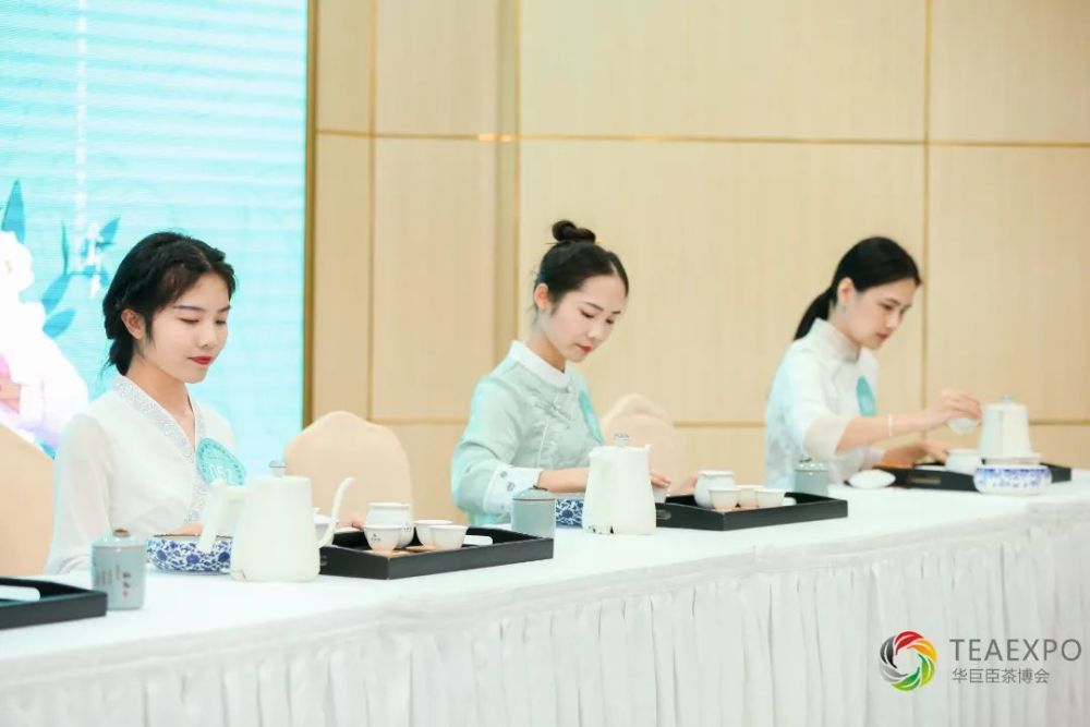 茶艺师们身着华服,安静地端坐在茶席前,伴随着婉转的音乐,专注地投茶、置水,置身于静雅的环境之中,尽情地展现精彩绝伦的茶艺!
