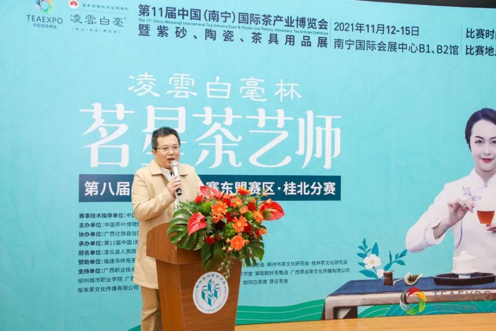 出席桂北分赛的嘉宾有:柳州城市职业学院经济管理系主任、学院茶文化研究学会会长李谦,华巨臣南宁茶博会项目负责人饶紫鹃,华巨臣茶博会南宁茶博会活动负责人陈春正。